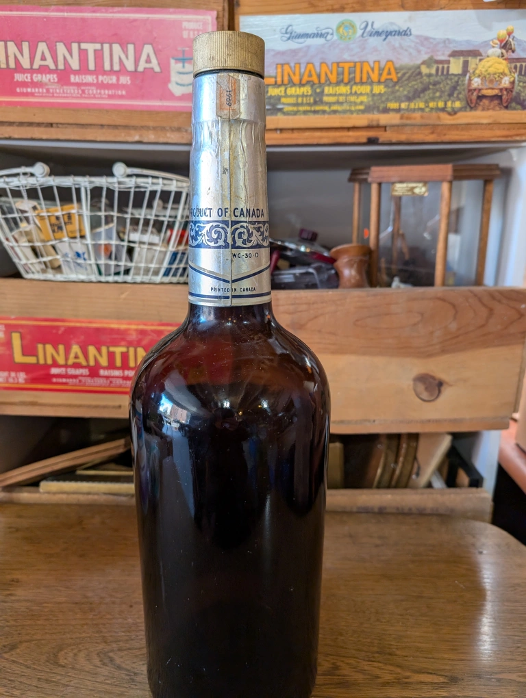Empty bottle of Canadian Club whisky. This is a very heavy vintage glass bottle that is empty. Label reads: