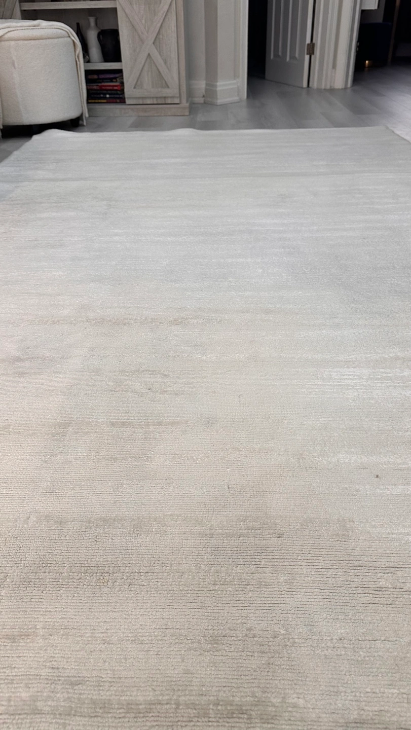 White area rug with a subtle texture. Great for a living room or bedroom.