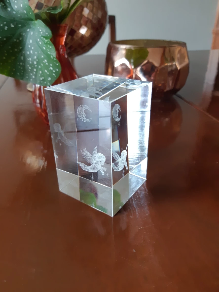 3d laser etched crystal glass paperweight - moon and cherub. Really cool and unique piece. Located in braeside SW. Meetup options available. Crossposted. Feel free to check out my other listings for more great finds. Still available if you see it here.