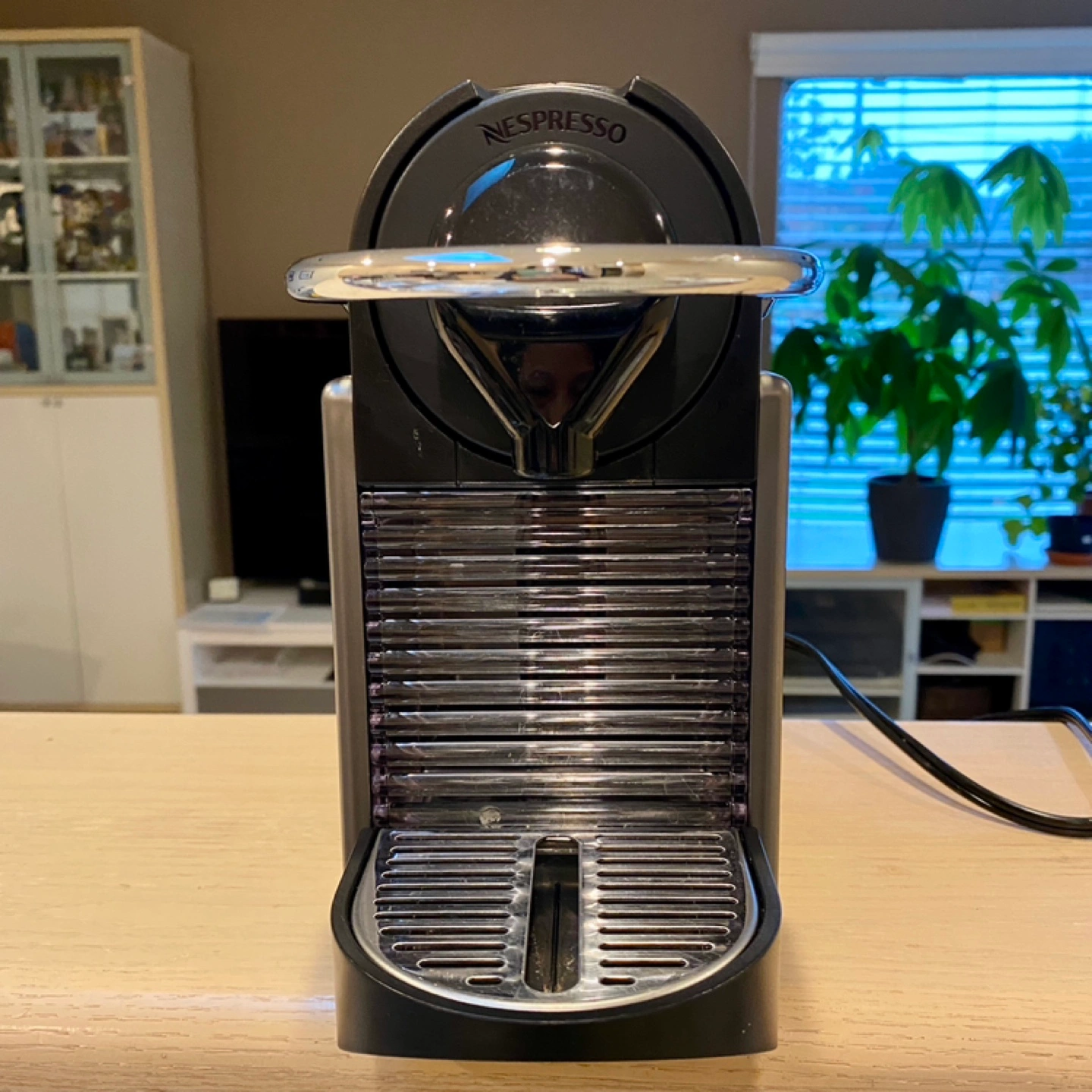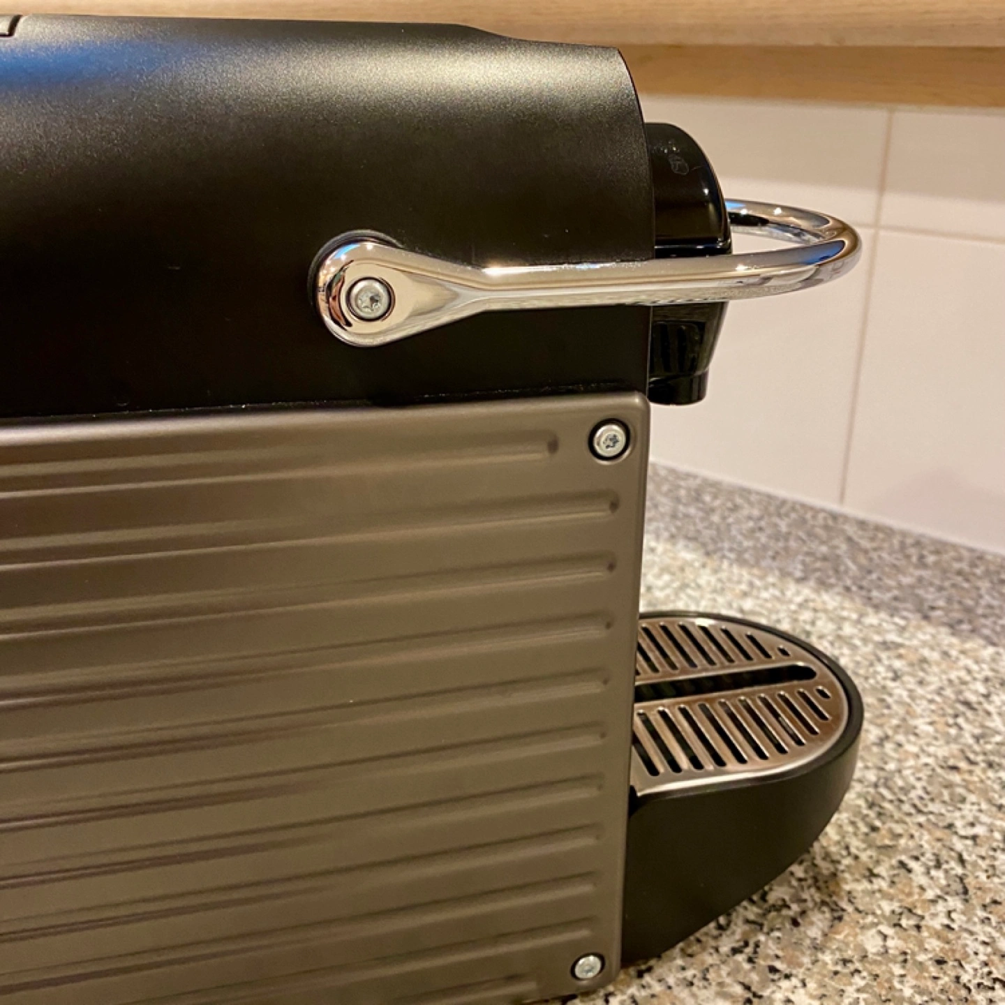 Black Nespresso Pixie coffee machine. Like new condition, works perfectly. Includes a removable water tank and a drip tray.