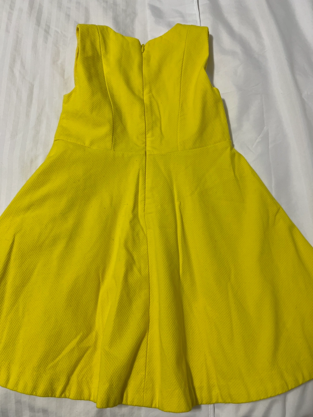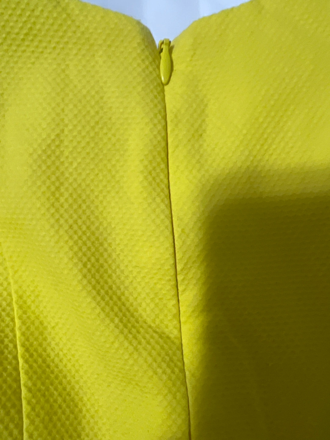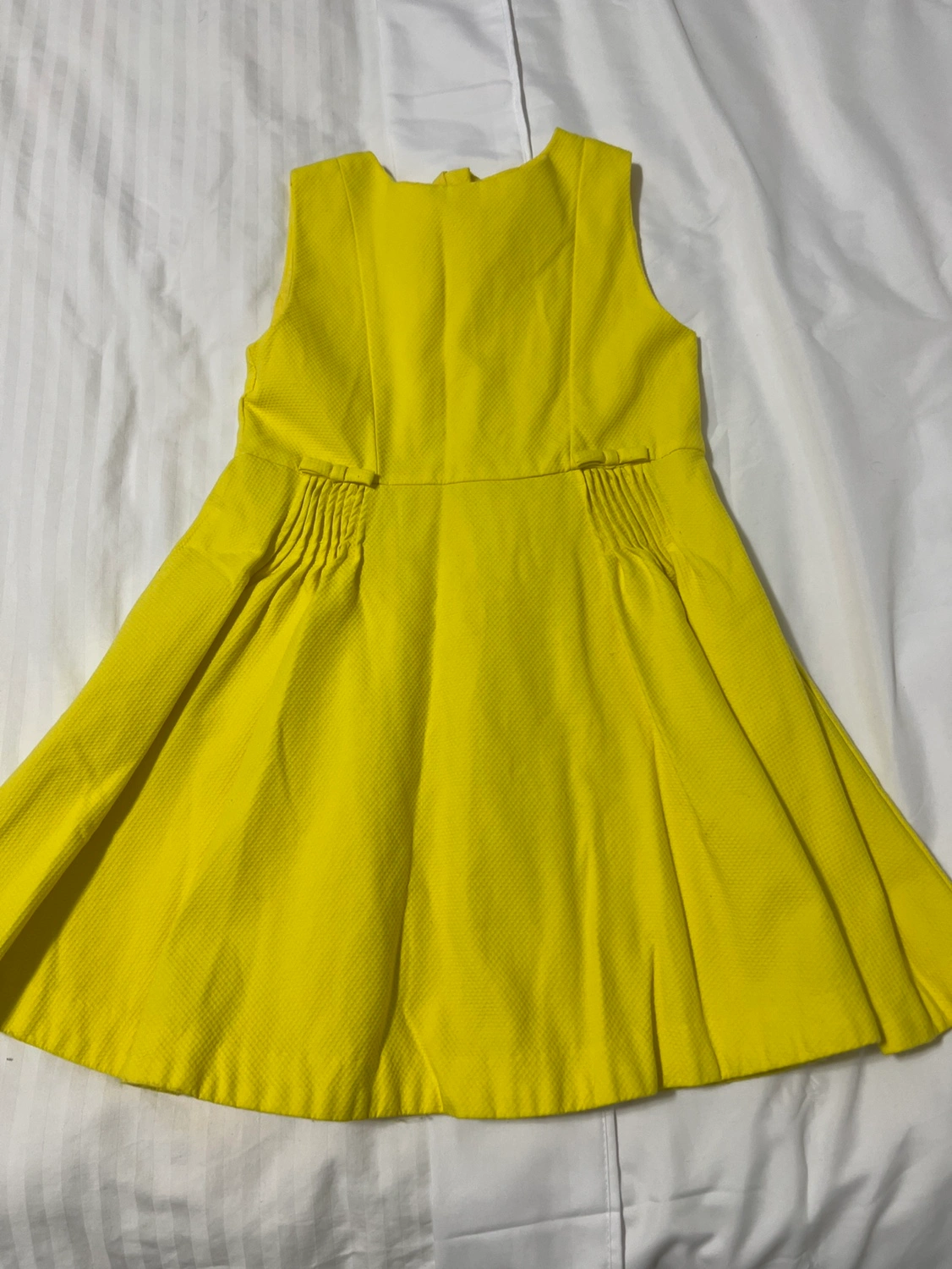 96Yellow sleeveless dress with a back zipper. Pleats at the back.