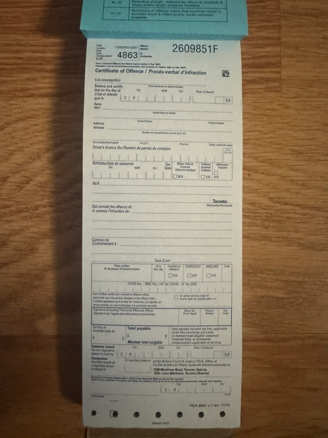 This is a Certificate of Offences ticket book. It includes fields for driver information, offence details, and payment. Intended for recreational/collector purposes only.