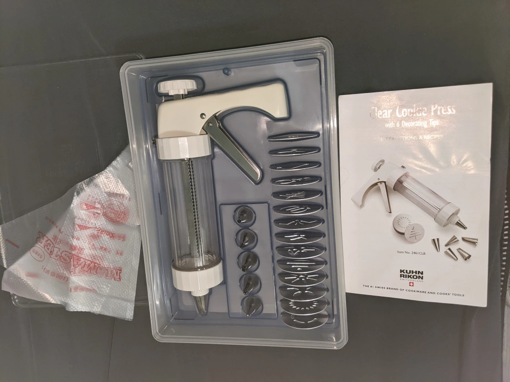 Kuhn Rikon Clear Cookie Press with 6 Tips and 4 bags New