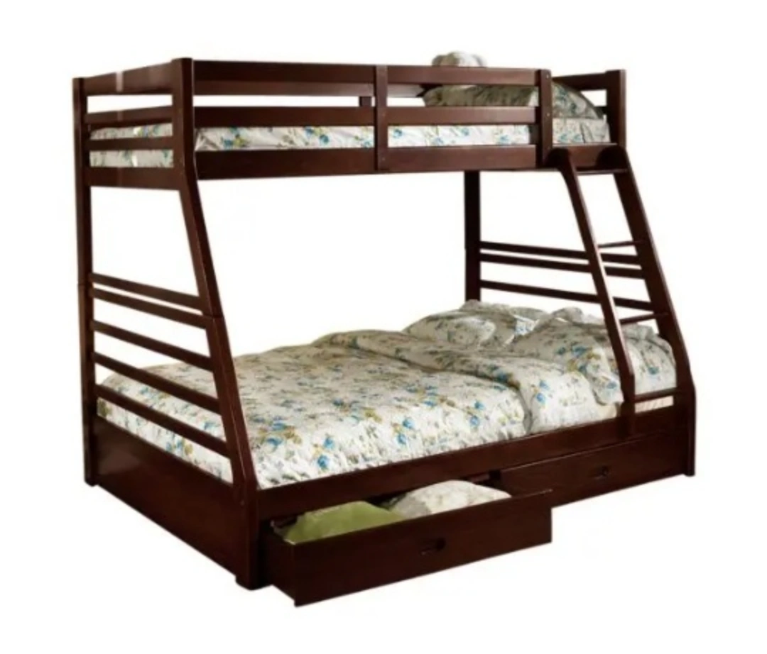 Bunk bed with twin top bunk and full bottom bunk. (keeping double mattres) Includes drawers for storage. Solid wood construction.