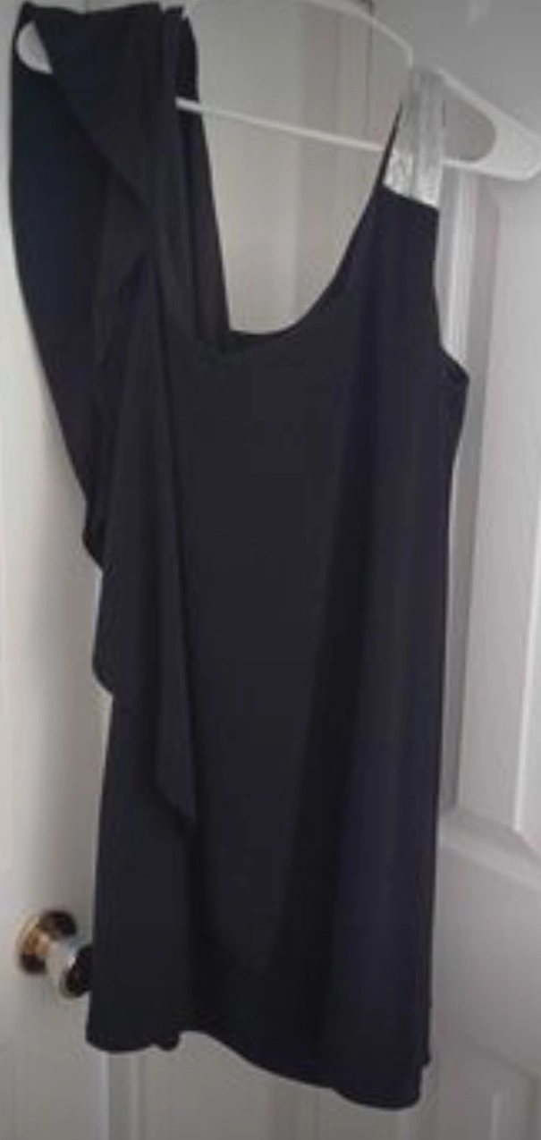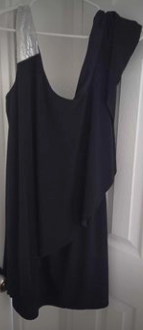 One-shoulder dress with a ruched detail and sparkly strap. Size medium, size 16. length 34". Pick-up Downtown Windsor. please check out my other listing. Barely used, in good condition.