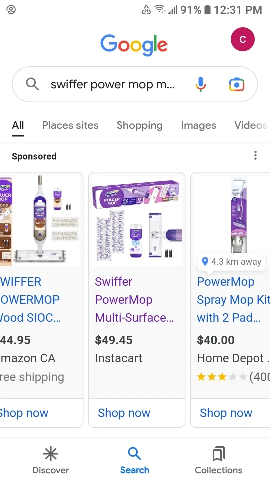 65Swiffer Power Mop with multiple cleaning pads. Includes cleaning solution.