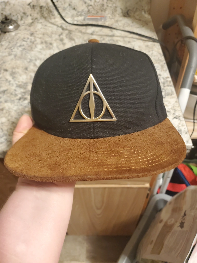 Buy & SellHarry Potter Deathly Hallows HatHarry Potter Deathly Hallows Hat$15Black hat with brown suede brim, features a silver Deathly Hallows symbol. Like new.ConditionLike newWHERE TO MEETFraiser Prospect ApartmentView MapSELLERJessicaBrow Of The Hill756 reviews0 chats·1 favorites·12 viewsSEND CHAT TO SELLERHi Jessica! I’m interested in your listing.Hi Jessica! I’m interested in your listing.Get the Karrot app to chatSign In to chat