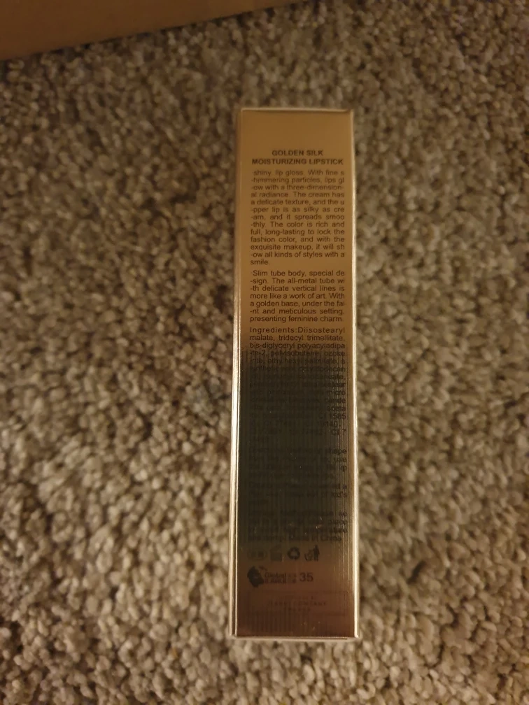 Golden Silk Moisturizing Lipstick. Shiny lip gloss. With fine shimmering particles, lips are shining with a moist feeling at radiance. The dream of a perfect colour expression. Upper lip is as silky as cream and soft as velvet, the fashion color is rich and silky. Fits your beauty flawlessly. The color and the texture of the lipstick go well with all kinds of styles with a glossy effect.