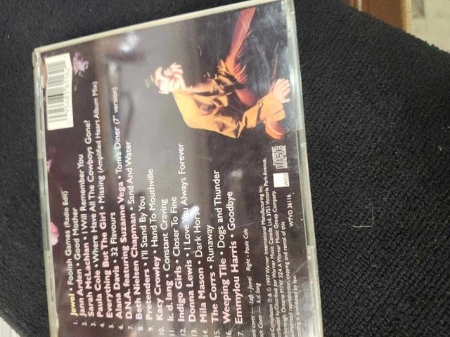 For sale is the 'Women & Songs' CD, featuring iconic female artists like Jewel, Sarah McLachlan, and Suzanne Vega, in used condition. This CD compiles memorable tracks from the 90s. Get ready to turn back time and rediscover the melodies of a generation. Cash accepted. If the ad is up, it's available.