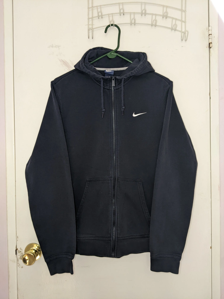 ⚽ Nike Y2K Small Swoosh Large Zip Hoodie Sweatshirt Navy Vintage Retro Fashion