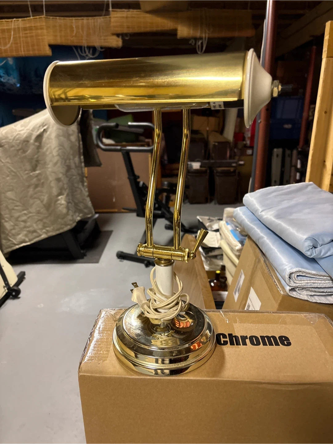 Classic brass metal desk lamp. Adjustable gooseneck design for precise lighting. Perfect for a home office or study area! Height is 16” and only $35 or best offer. Contact Bill at 403-667-0403 .