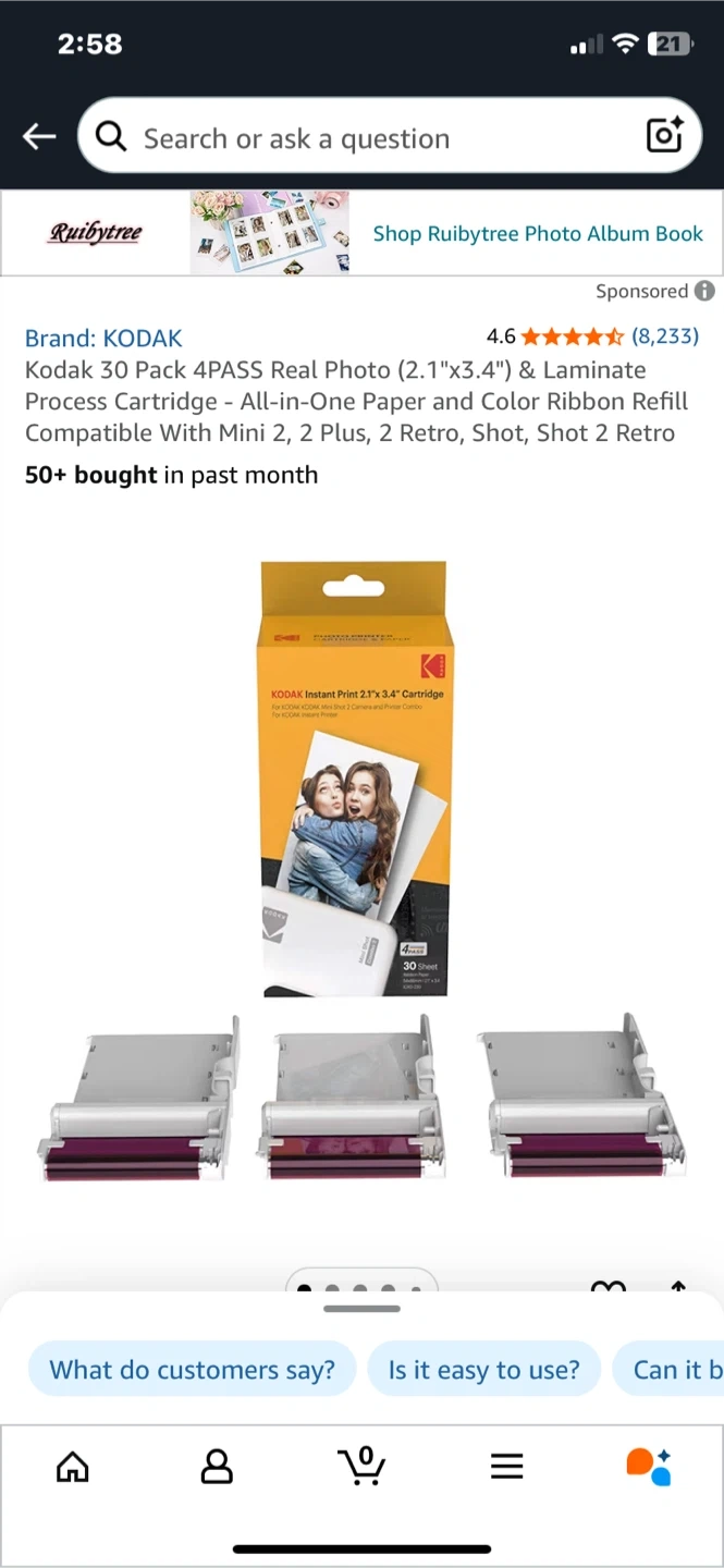 New Kodak Mini 2 Cartridge 30 Sheets 4 Pass