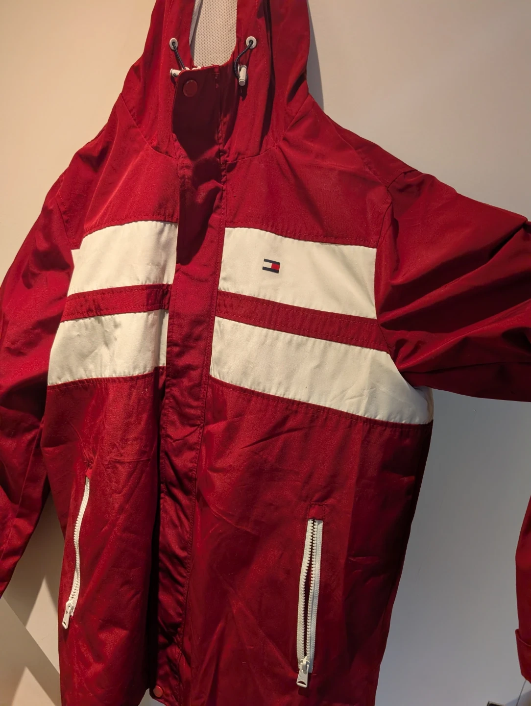 Tommy Hilfiger windbreaker jacket in red with white stripes - brand new never used still with tags ( size Large )