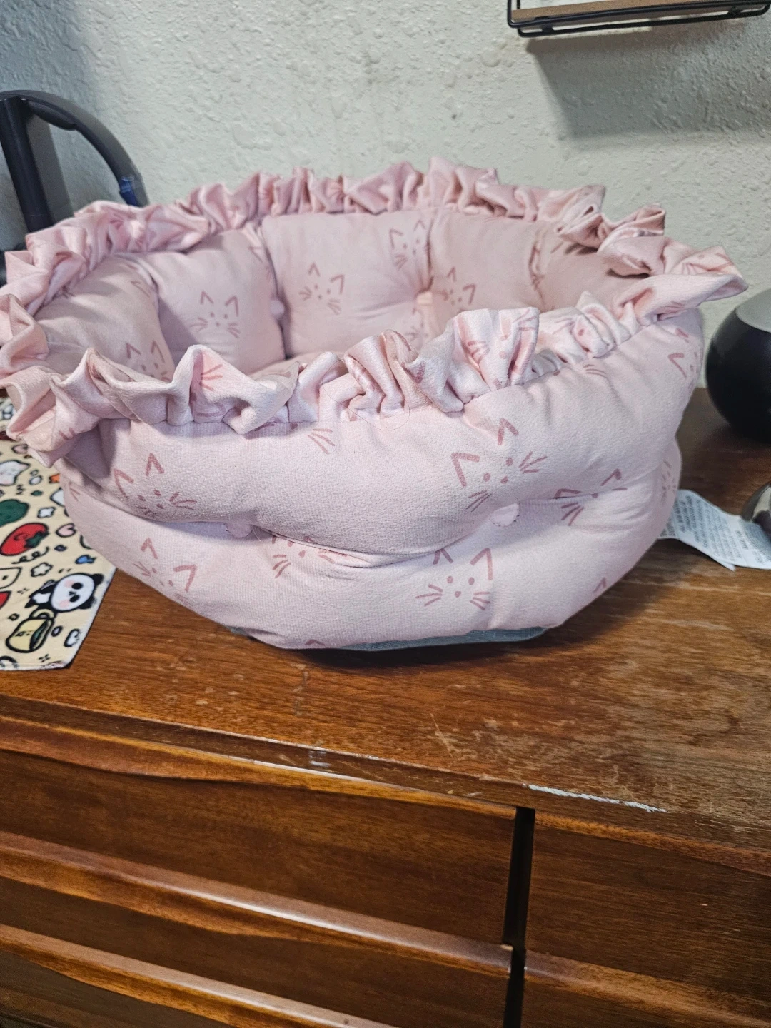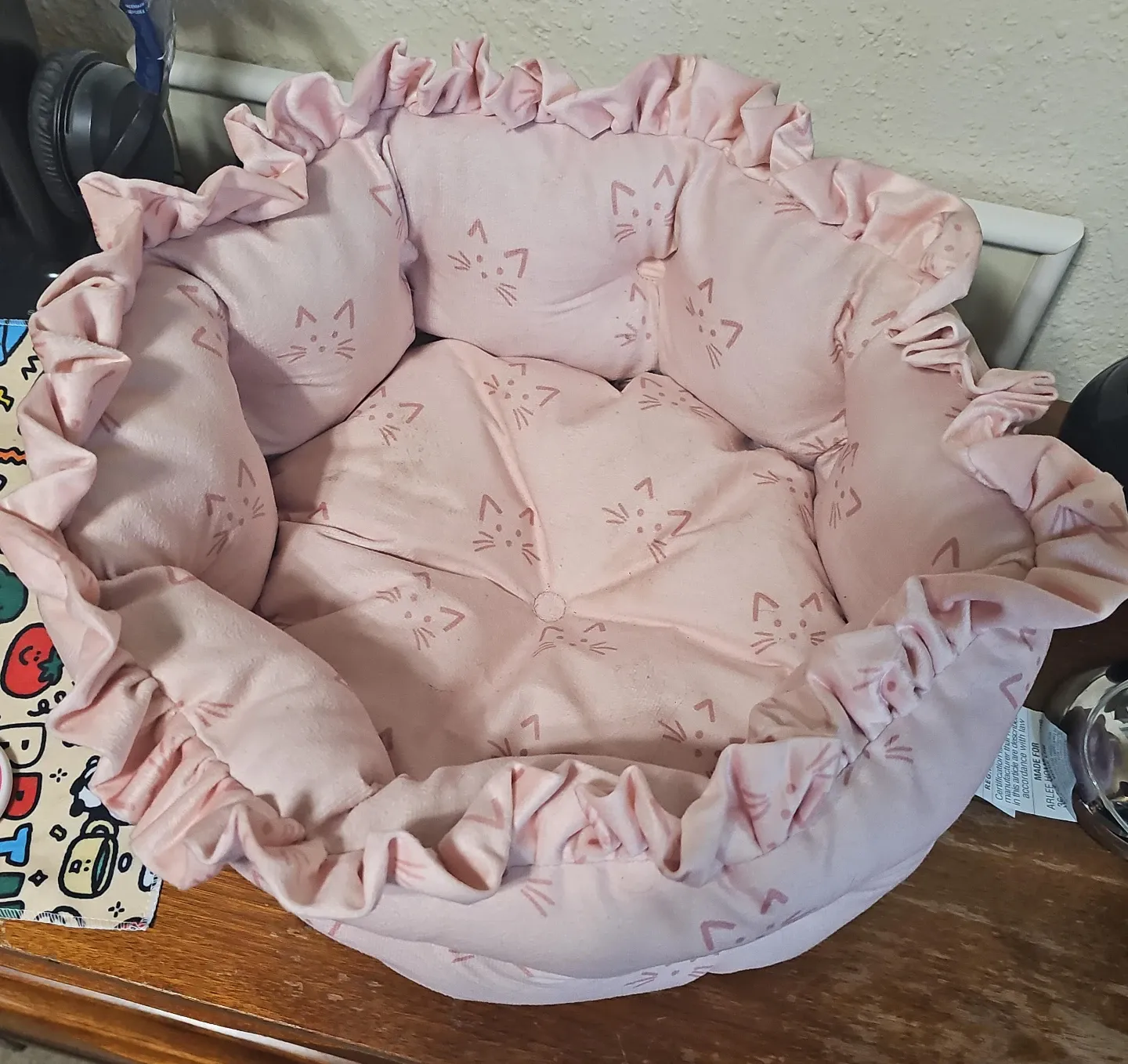 Buy & SellPink Ruffled Cat BedPink Ruffled Cat Bed$7A super cute pink, ruffled pet bed with a cute cat face pattern. It's plush and comfy for your furry friend. Soft interior and exterior fabric.ConditionLike newWHERE TO MEET1147 Quadra StView MapSELLERverifiedMariaHarris Green650 reviews0 chats·0 favorites·4 viewsSEND CHAT TO SELLERHi Maria! I’m interested in your listing.Hi Maria! I’m interested in your listing.Get the Karrot app to chatSign In to chat
