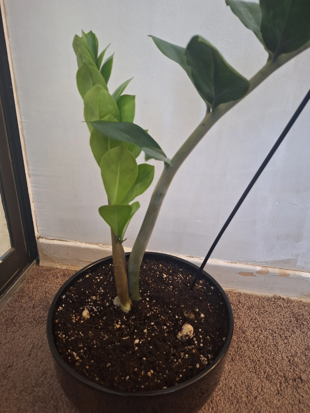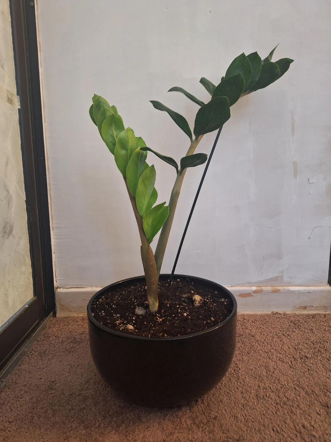 Pick up only. This is a healthy ZZ plant with glossy green leaves. It's potted in a simple black planter. ZZ plants are known for being low-maintenance and tolerant of various light conditions. 10" ×5" ceramic pot. 24 " tall plant . Very healthy and thick stems.new soil