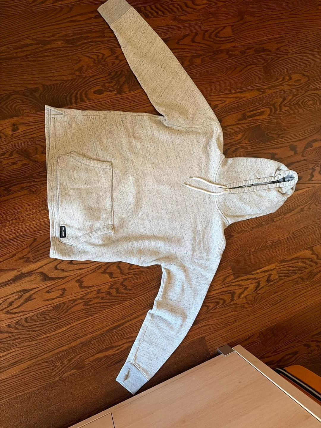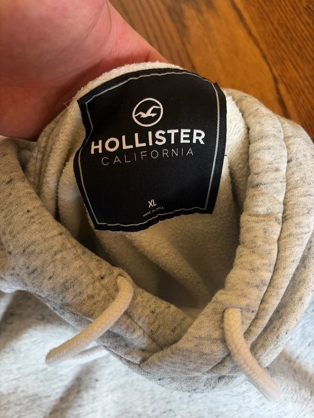 This is a Hollister California hoodie and matching sweatpants set in heather gray. Sweatpants are L, hoodie is size XL. The hoodie has a front pocket and a drawstring hood.