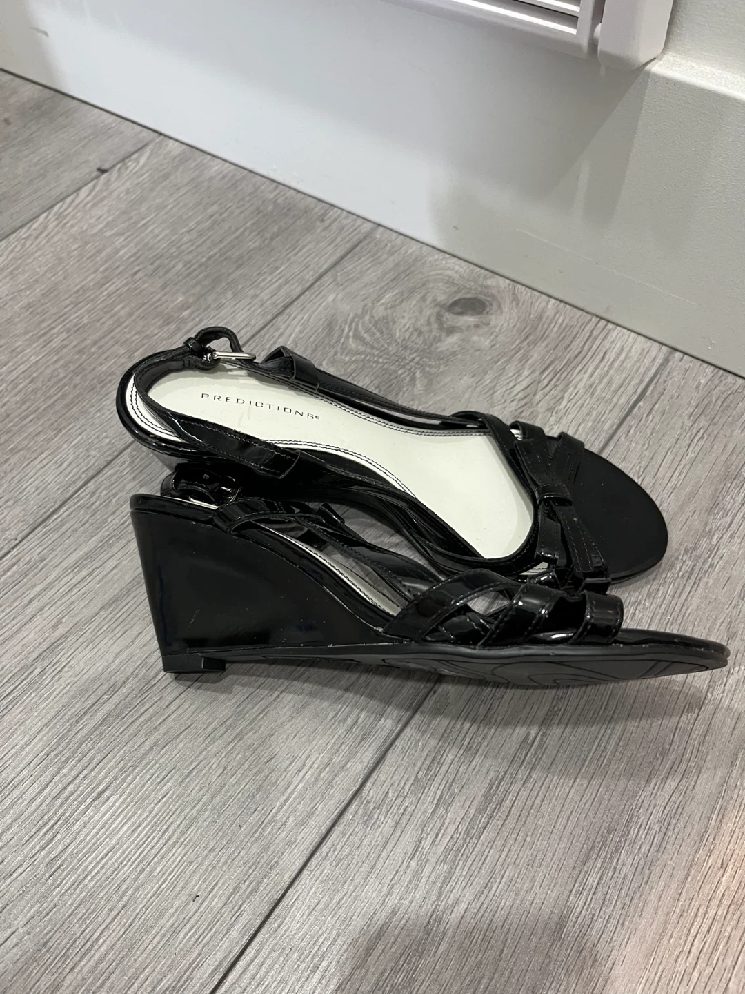 Predictions Black Patent Wedge Sandals Size 6.5