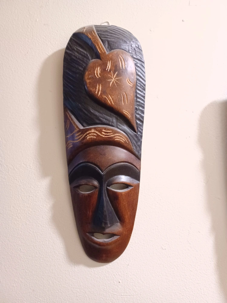 Hand-Carved Wooden Mask Wall Hanging