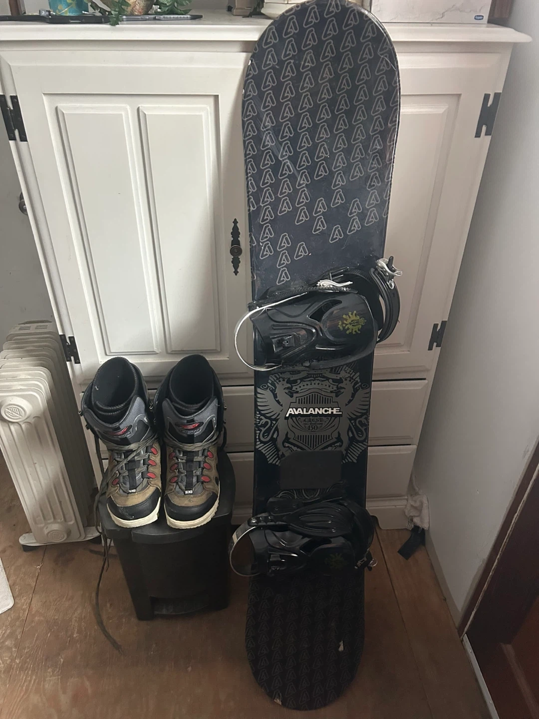 Selling an Avalanche snowboard and a pair of snowboarding boots. Both items are in good condition. Ready for the slopes!