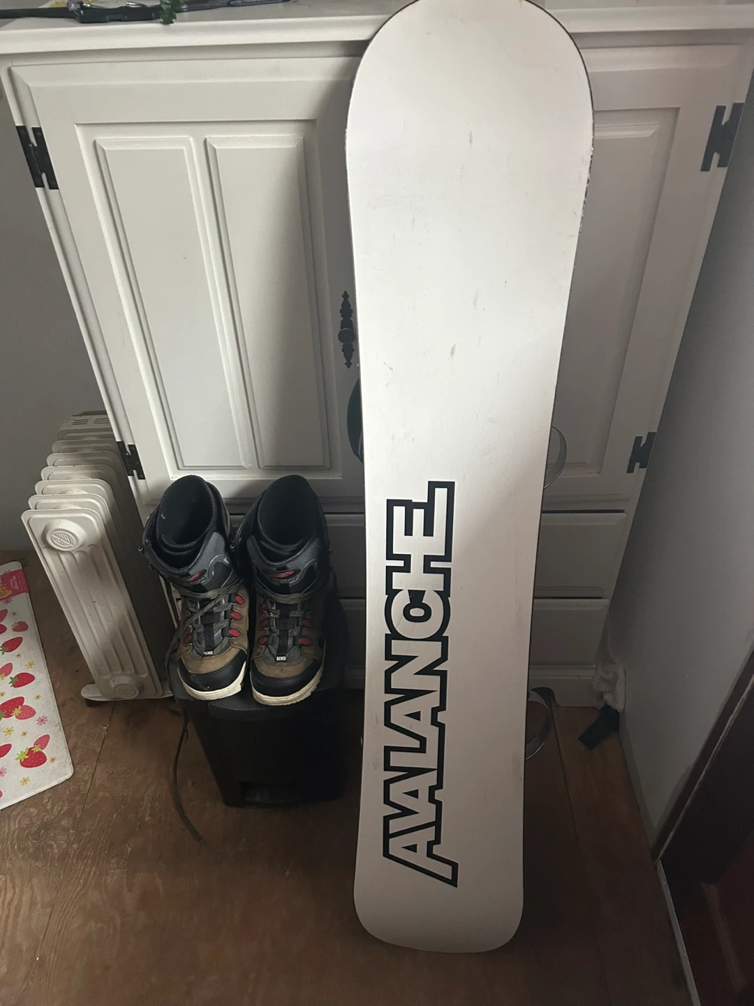 Selling an Avalanche snowboard and a pair of snowboarding boots. Both items are in good condition. Ready for the slopes!