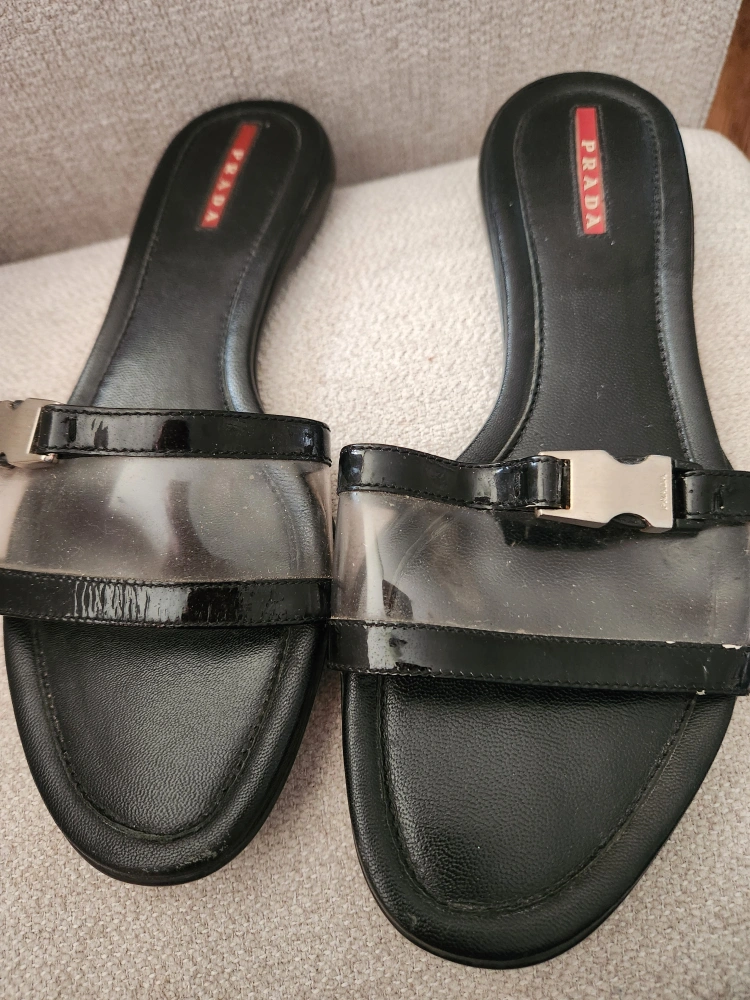 Prada Black Patent Leather Sandals
