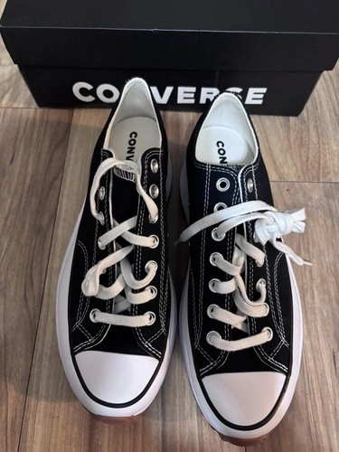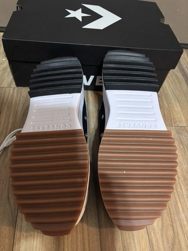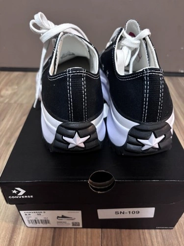 The Converse Run Star Hike Ox in Black White is a stylish sneaker designed for men. This athletic shoe features the signature Converse branding and a style code of 168816C. It is a versatile option for casual wear or athletic activities, showcasing a modern design that is both practical and fashionable. The US shoe size is 8.5, ensuring a comfortable fit for everyday wear.