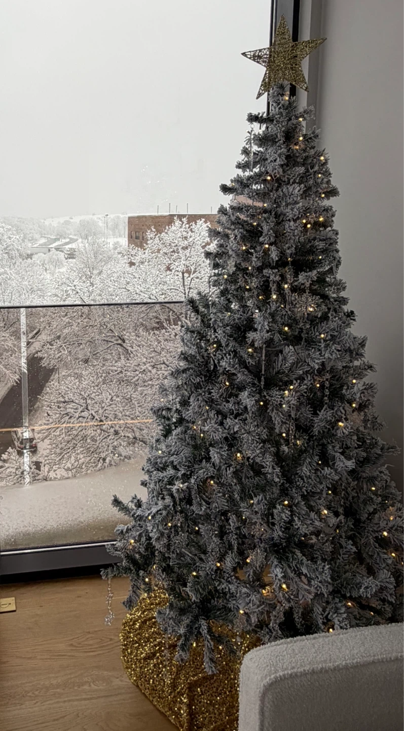 Selling a lovely Christmas tree, perfect for the holidays! It comes with pre-installed lights, star topper, and 40 crystal ornaments. It's in perfect condition, just used once, and ready to bring some festive cheer to your home.