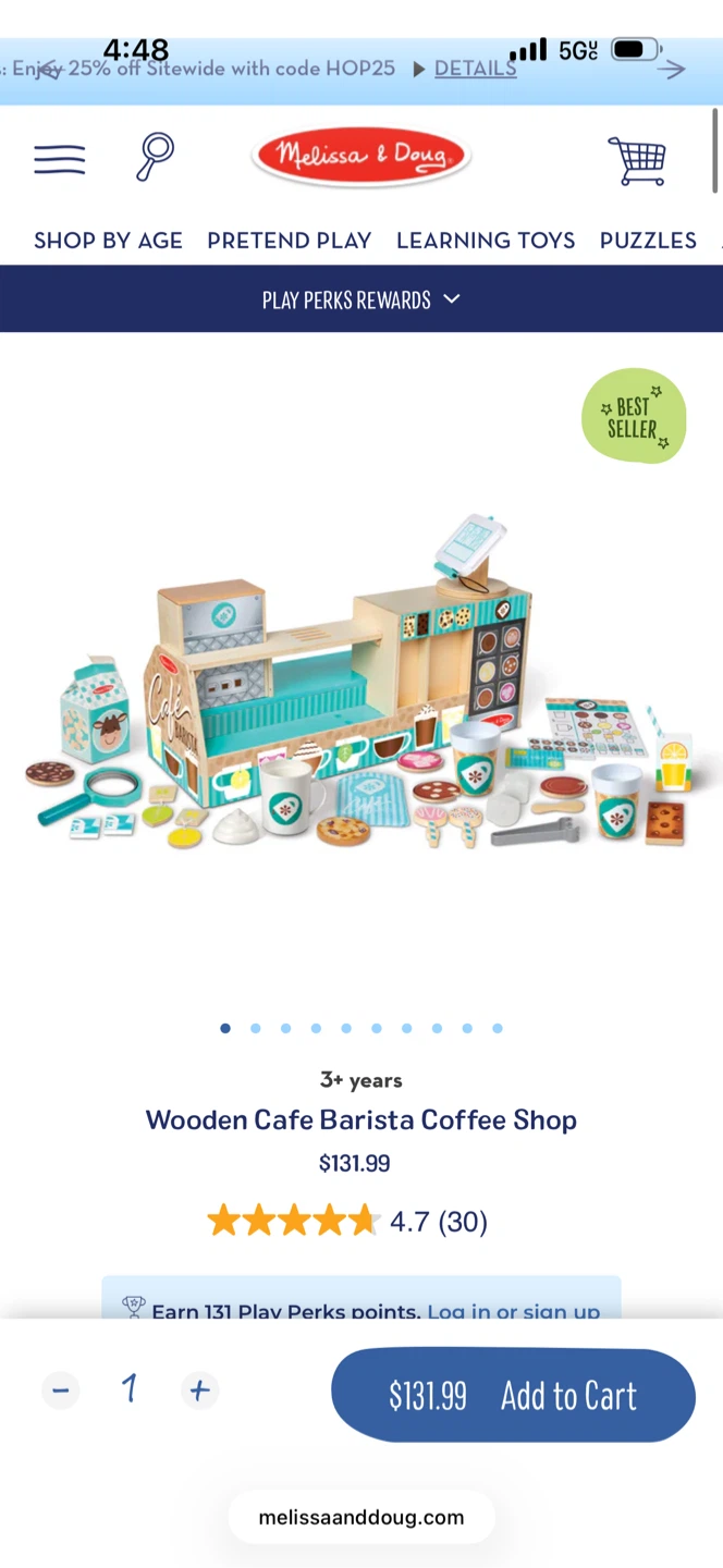 Melissa & Doug Wooden Cafe Barista Coffee Shop Play Set