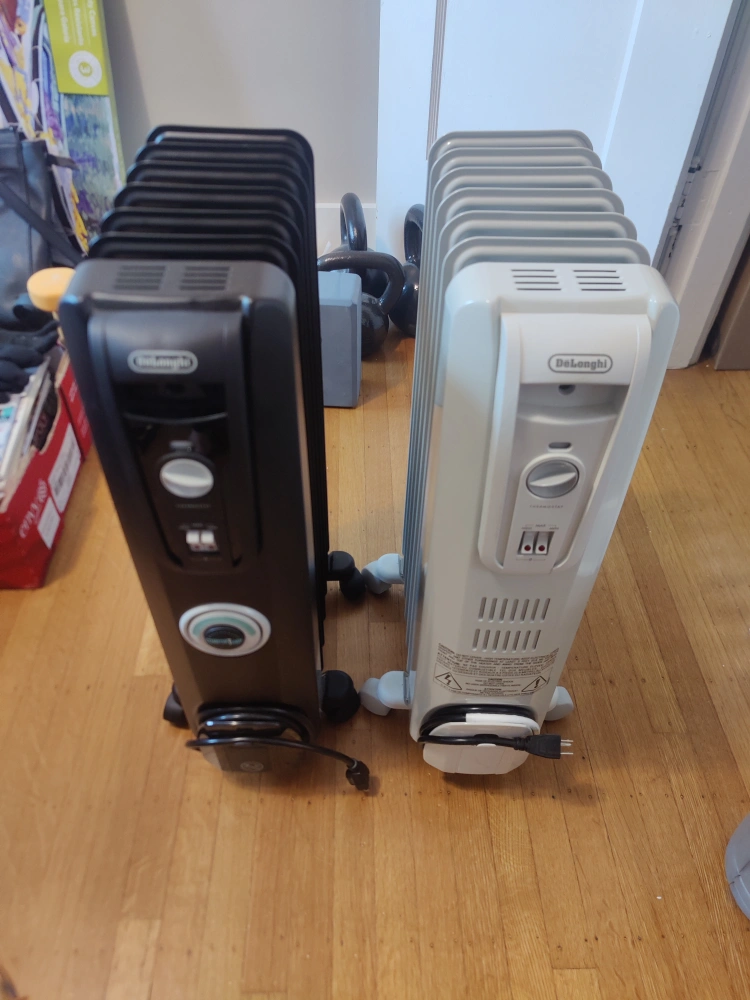 Two DeLonghi oil-filled radiator heaters.