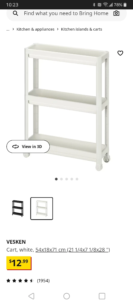 1 / 11 / 1Buy & SellVESKEN Cart, white, 54x18x71 cmVESKEN Cart, white, 54x18x71 cm$5Cart, white, 54x18x71 cm (21 1/4x7 1/8x28 ").ConditionLike newWHERE TO MEETCheck LocationView MapSELLERShandyWillowdale E99679 reviews2 chats·2 favorites·54 viewsSEND CHAT TO SELLERHi Shandy! I’m interested in your listing.Hi Shandy! I’m interested in your listing.Get the Karrot app to chatSign In to chat
