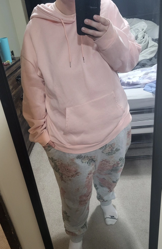 Pink hoodie with drawstring and front pocket from Shein 4x