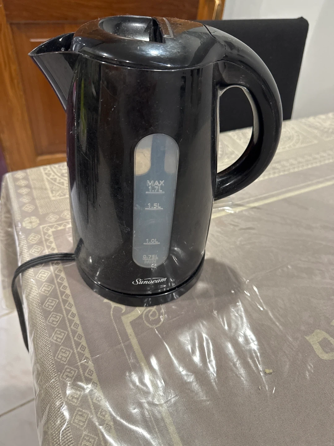 Selling a Sunbeam electric kettle in black! It has a 1.7L capacity, perfect for making tea or coffee for a few people. It's in great condition and heats water quickly