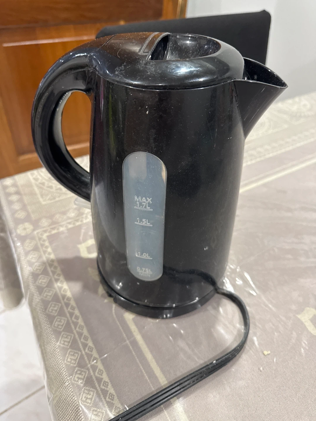 Selling a Sunbeam electric kettle in black! It has a 1.7L capacity, perfect for making tea or coffee for a few people. It's in great condition and heats water quickly