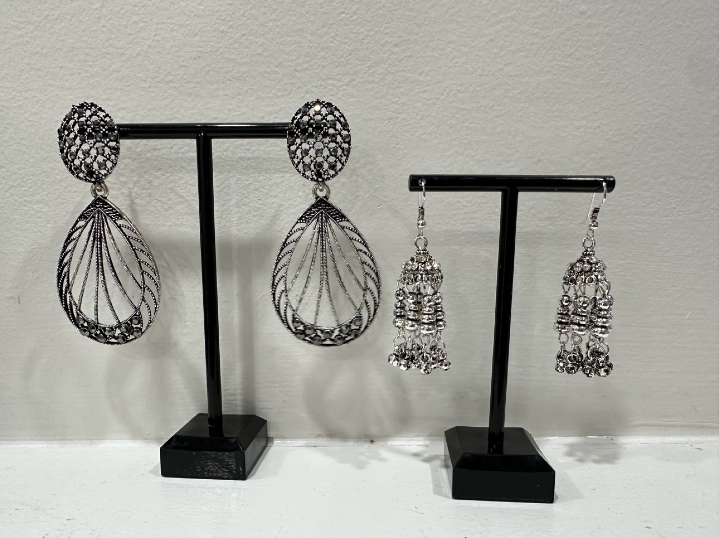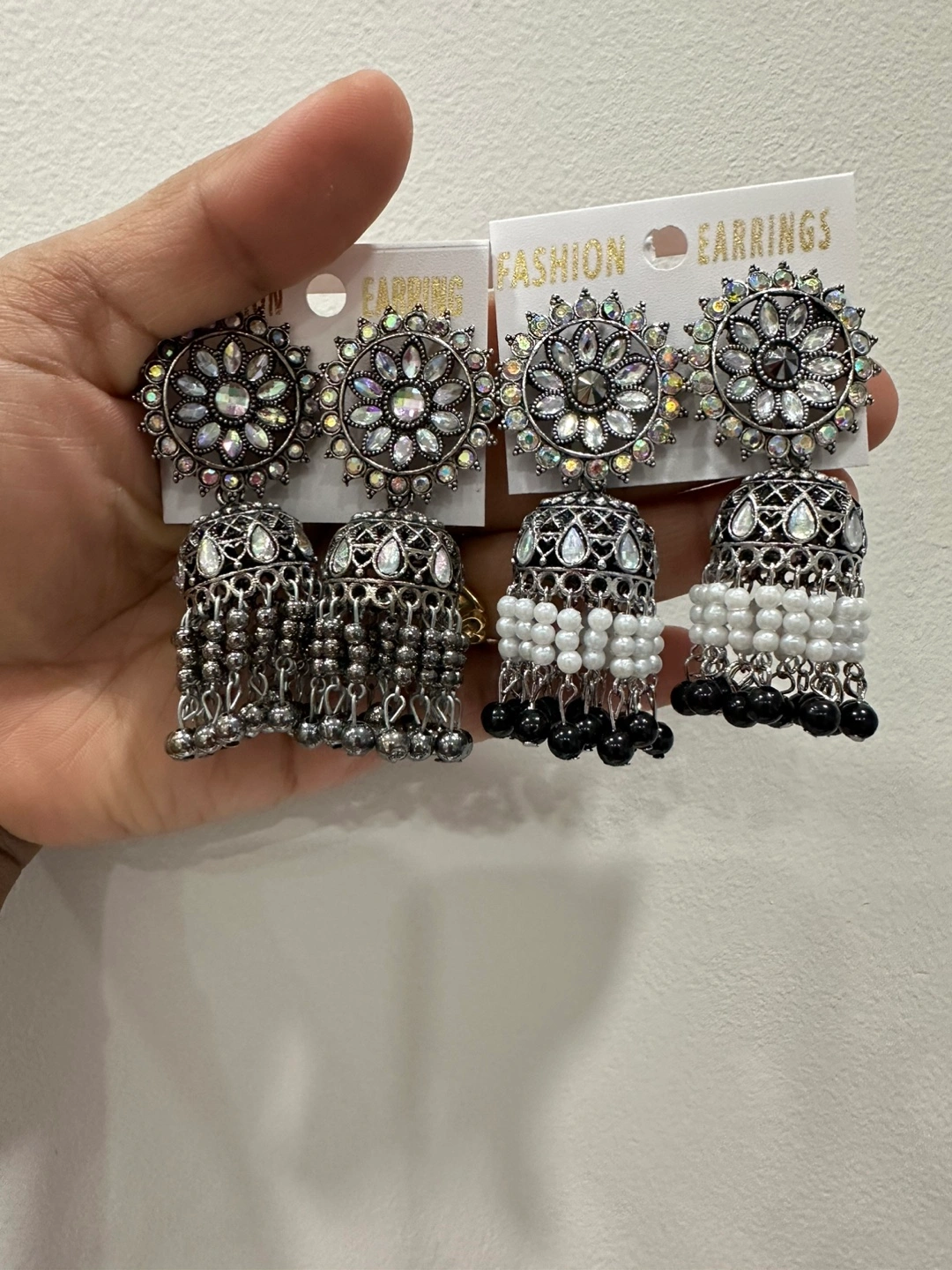 Brand new Oxidised fashion earrings with Various styles. Some feature rhinestones and unique designs. Each pair 10$.