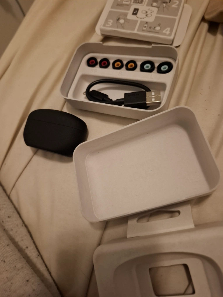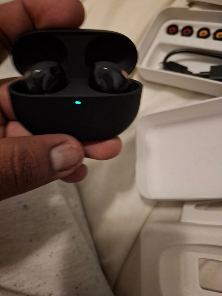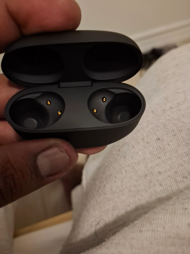 10Wireless earbuds with charging case. Includes charging cable and earbud tips.