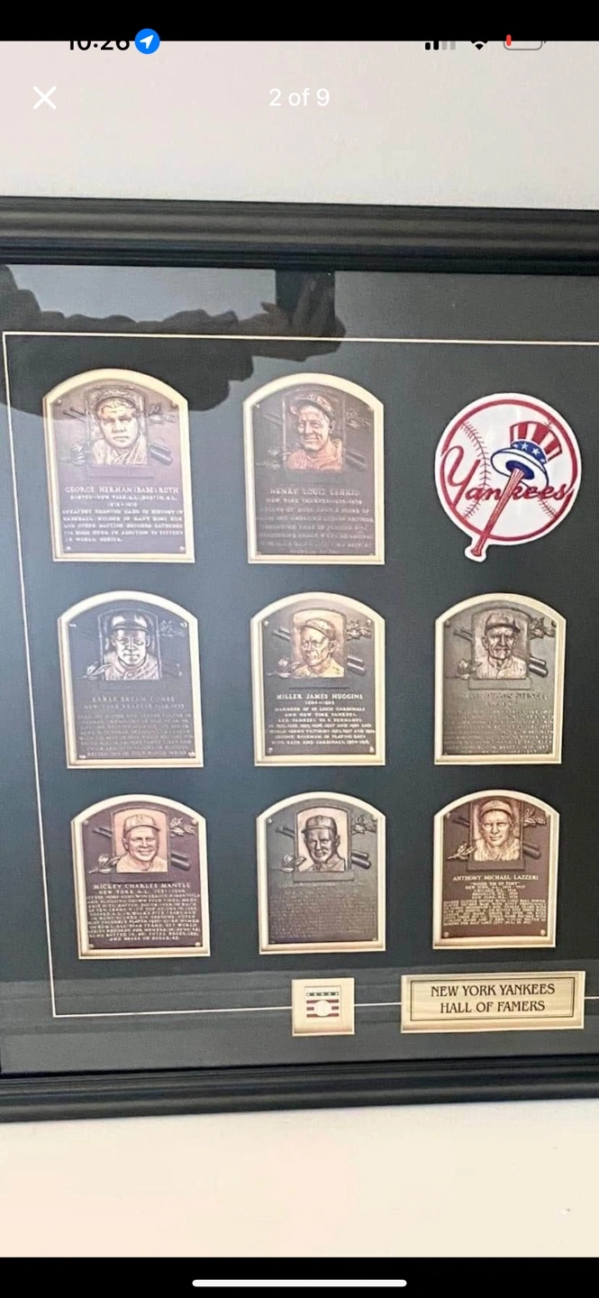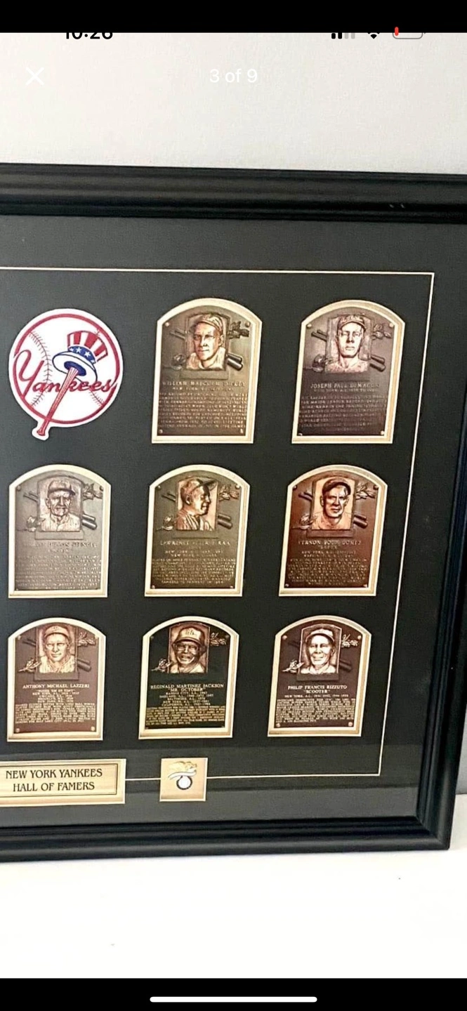 Rare New York Yankees Hall of Fame Players Plaques Framed- Ruth, Mantle, Gehrig Etc.
