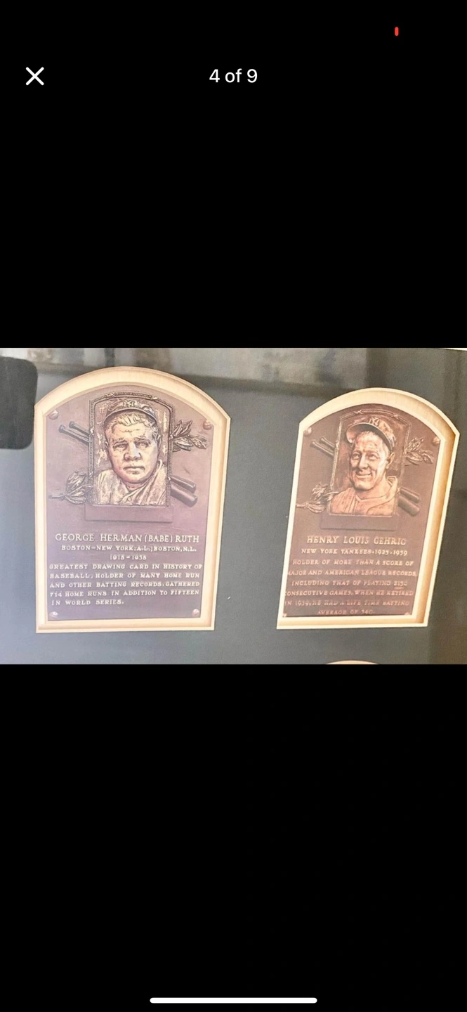 NY Yankees Hall of Fame Players Plaques- Ruth, Mantle, Gehrig