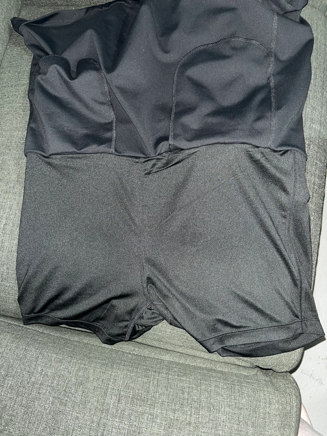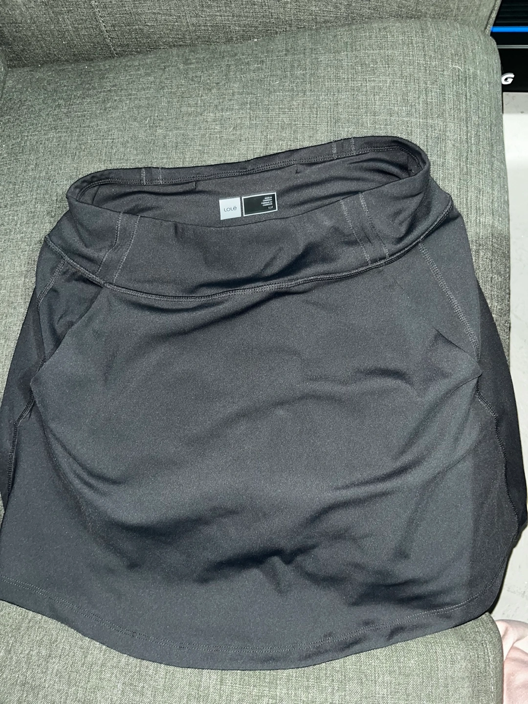Black skort with built-in shorts. Size small 2 front pockets and one in the black slit.