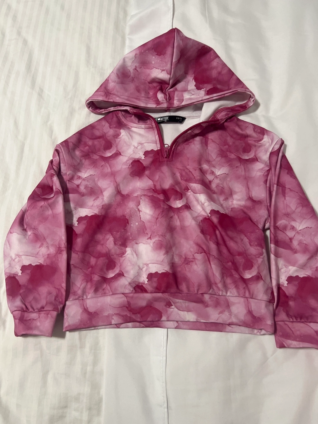 96Pink hoodie with a marble print. Size XS/TP (5/6).