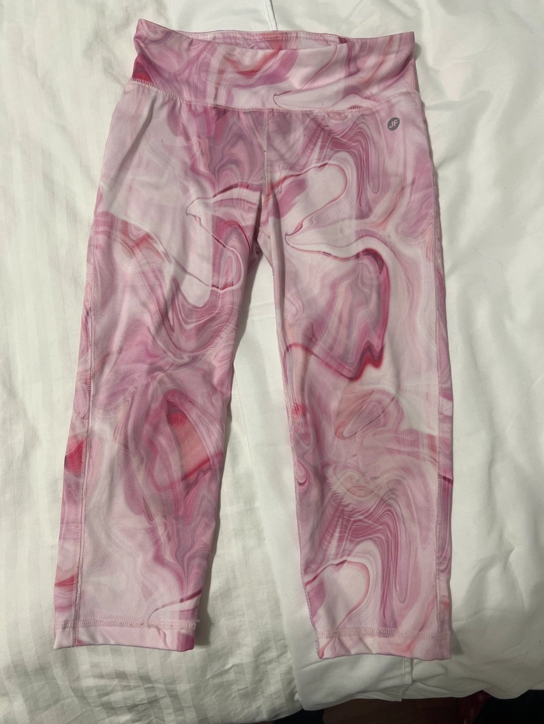 96Pink and white marble print leggings. Size M/M, 7-9.