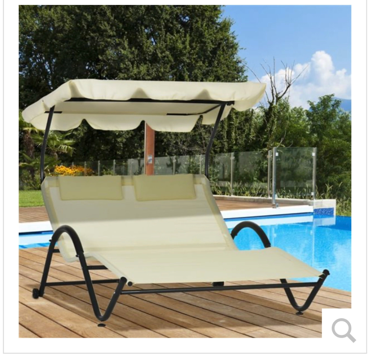 Outsunny Patio Outdoor Bed, Outdoor Chaise Sun Lounger for Two Person with Adjustable Canopy, Detachable Pillows, and Wheels for Sun Room, Garden, Poolside