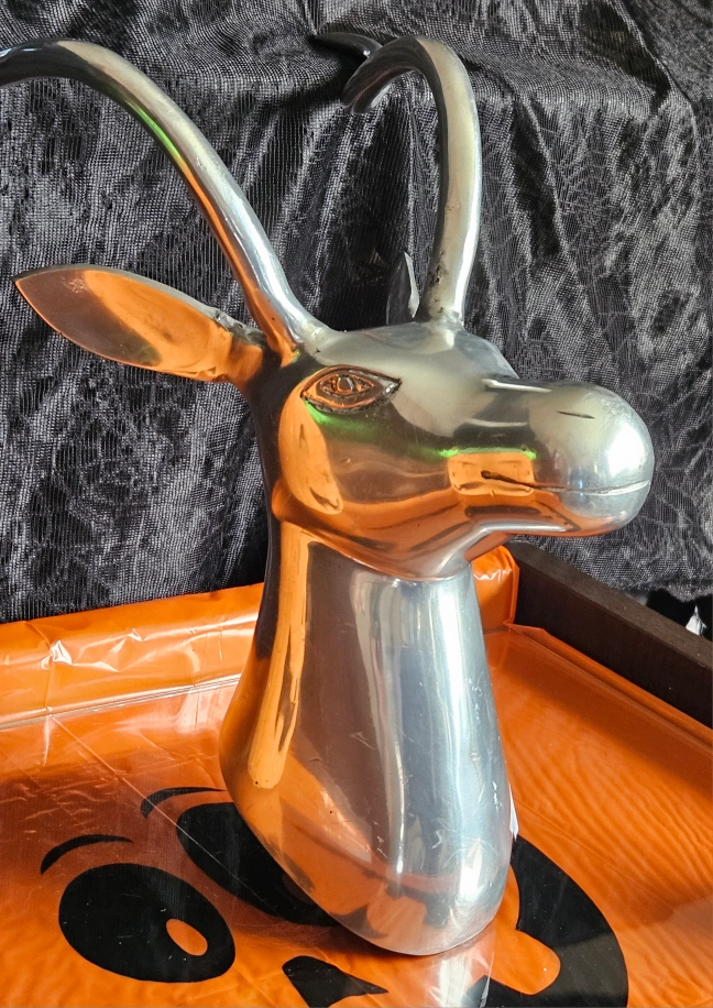 Vintage 1990's Polished Aluminum Antelope Wall Mount Head Sculpture