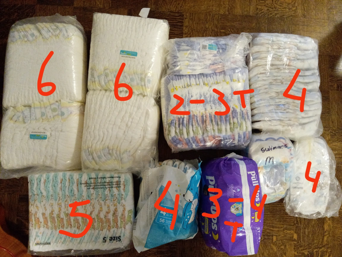 36Sizes you can see on the second photo There are: Size 6 Size 5 Size 4 Size 2-3 T Size 3-4 T Any bag is $8, but if buying all can be cheaper $40 King and Dufferin location