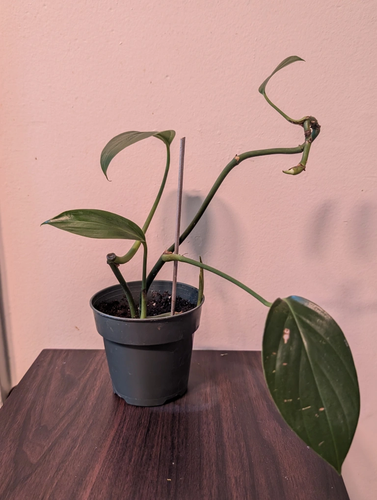rhaphidophora decursiva juvenile plant. Multiple rooted cuttings in soil with new growth points. rhaphidophora decursiva is a fast growing vine that fenestrates when attached to a pole.