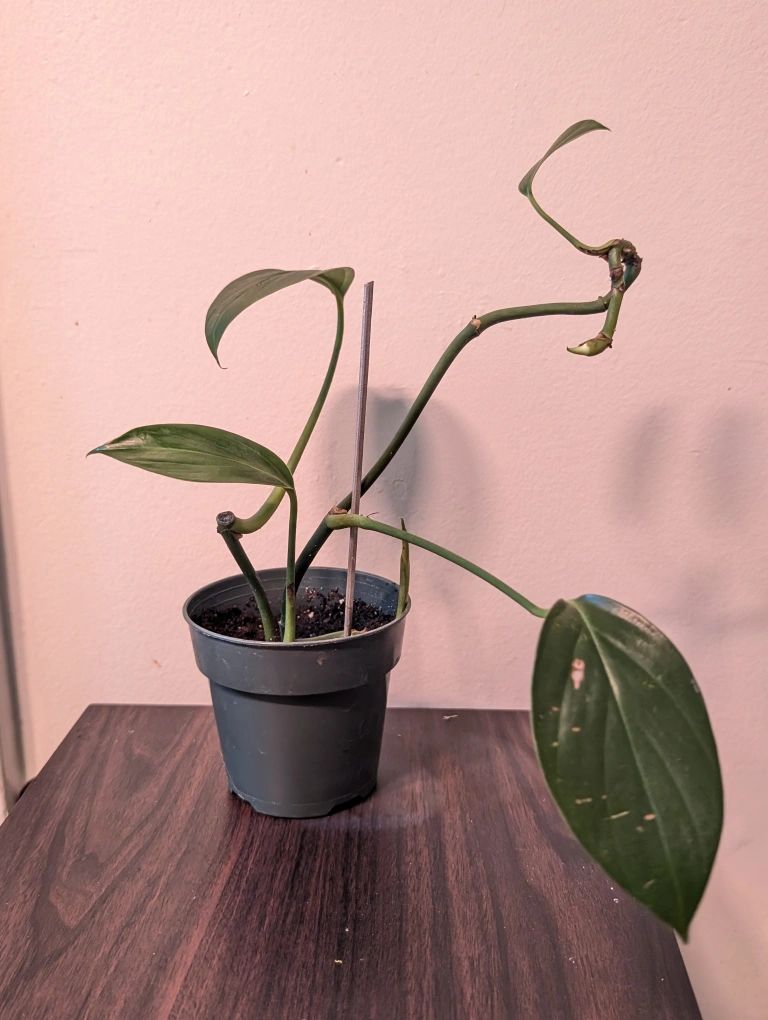 rhaphidophora decursiva juvenile plant. Multiple rooted cuttings in soil with new growth points. rhaphidophora decursiva is a fast growing vine that fenestrates when attached to a pole.