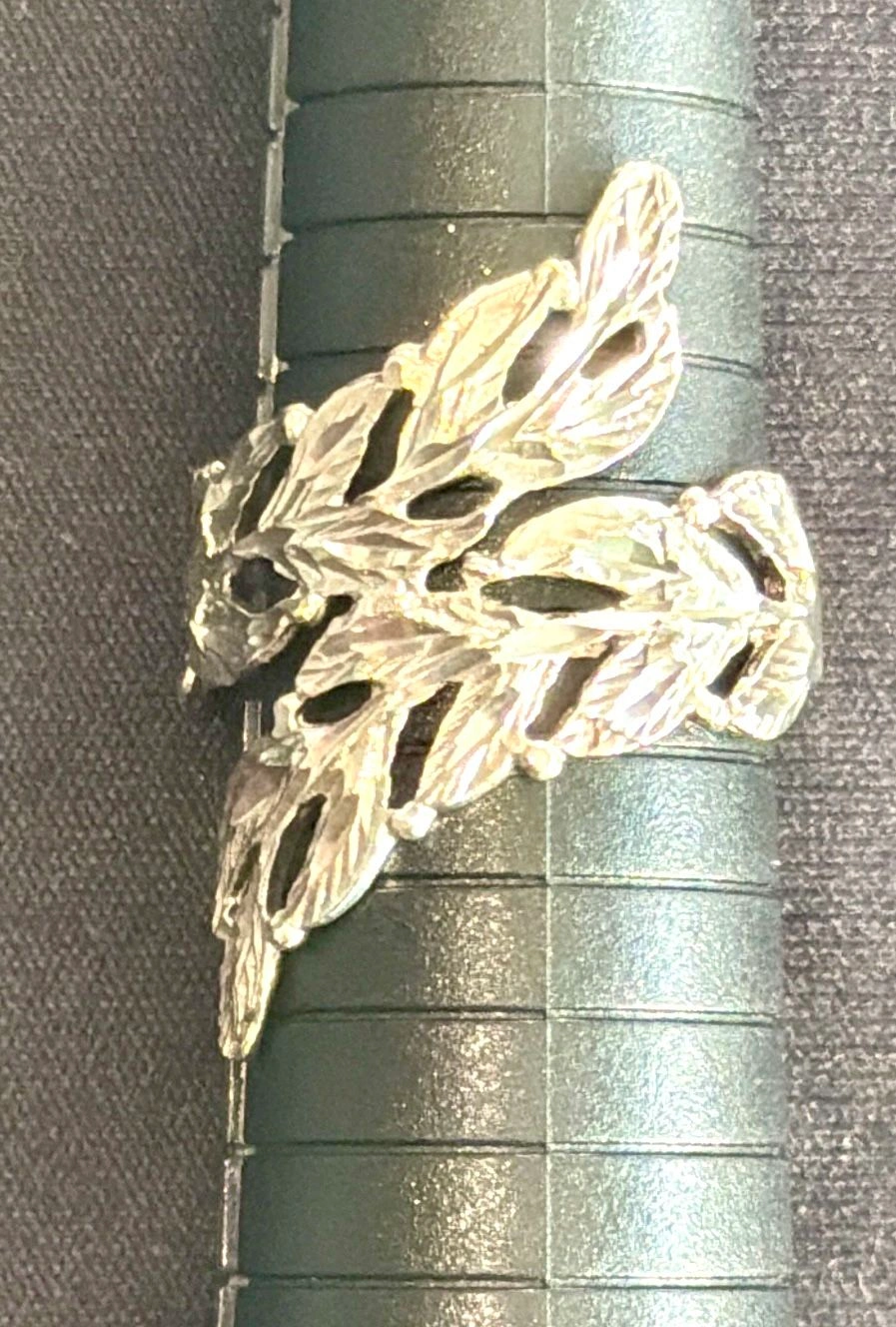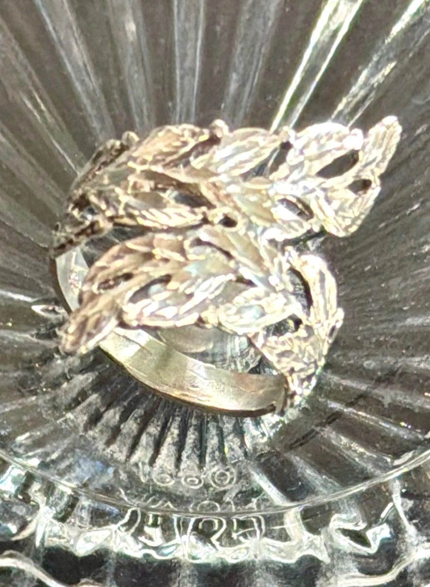 This handcrafted vintage solid 14K White Gold Leaf Ring is a must-have for any statement jewelry lover! The bypass design features a garland of intricately carved leaves, accented with delicate beads, that gracefully curves around your finger. Diamond Cut detailing for the sparkle. The lifelike level of detail in this ring makes it a masterpiece. Size: 10 1/2. Can also be sized by an authorized jeweler. Weight: 4.65 grams of 14K White Gold. Stamped: 14K. This has been stored away in a safety deposit box for many decades. Condition: Very good with no noted flaws. A great vintage piece! All of my items are Real Gold and Genuine Gem Stones and or Diamond if stipulated in the listing. Prices are firm. If you see it listed, it’s still available. Message me to arrange the purchase. Cash only sale. All transactions will be conducted at Glenview Police Department or Morton Grove PD. Please check out my other listings. Thank you.