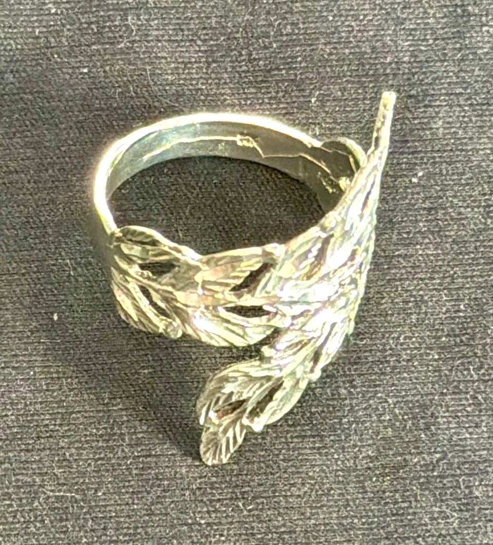 This handcrafted vintage solid 14K White Gold Leaf Ring is a must-have for any statement jewelry lover! The bypass design features a garland of intricately carved leaves, accented with delicate beads, that gracefully curves around your finger. Diamond Cut detailing for the sparkle. The lifelike level of detail in this ring makes it a masterpiece. Size: 10 1/2. Can also be sized by an authorized jeweler. Weight: 4.65 grams of 14K White Gold. Stamped: 14K. This has been stored away in a safety deposit box for many decades. Condition: Very good with no noted flaws. A great vintage piece! All of my items are Real Gold and Genuine Gem Stones and or Diamond if stipulated in the listing. Prices are firm. If you see it listed, it’s still available. Message me to arrange the purchase. Cash only sale. All transactions will be conducted at Glenview Police Department or Morton Grove PD. Please check out my other listings. Thank you.