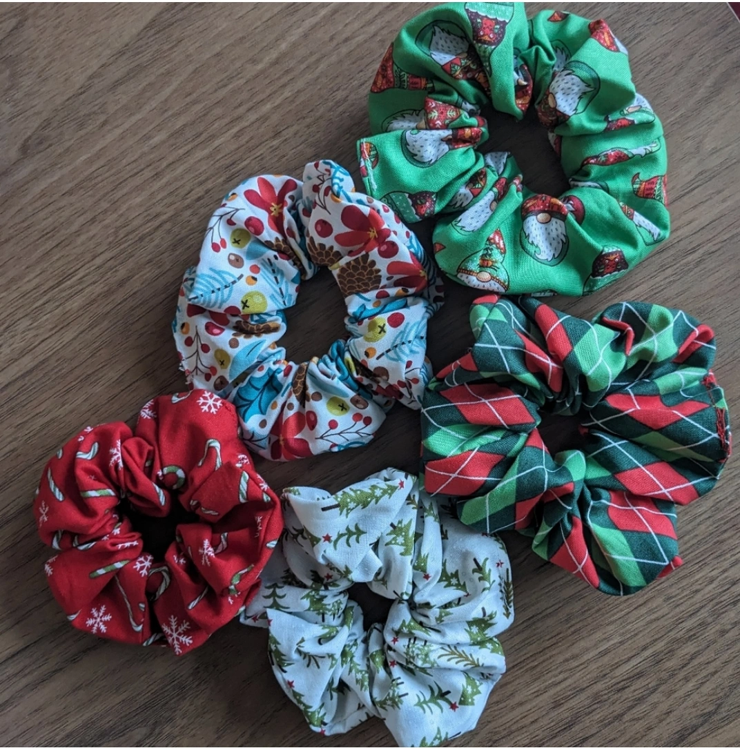 99$5 each Great for adding a festive touch to any outfit. Handmade scrunchies.