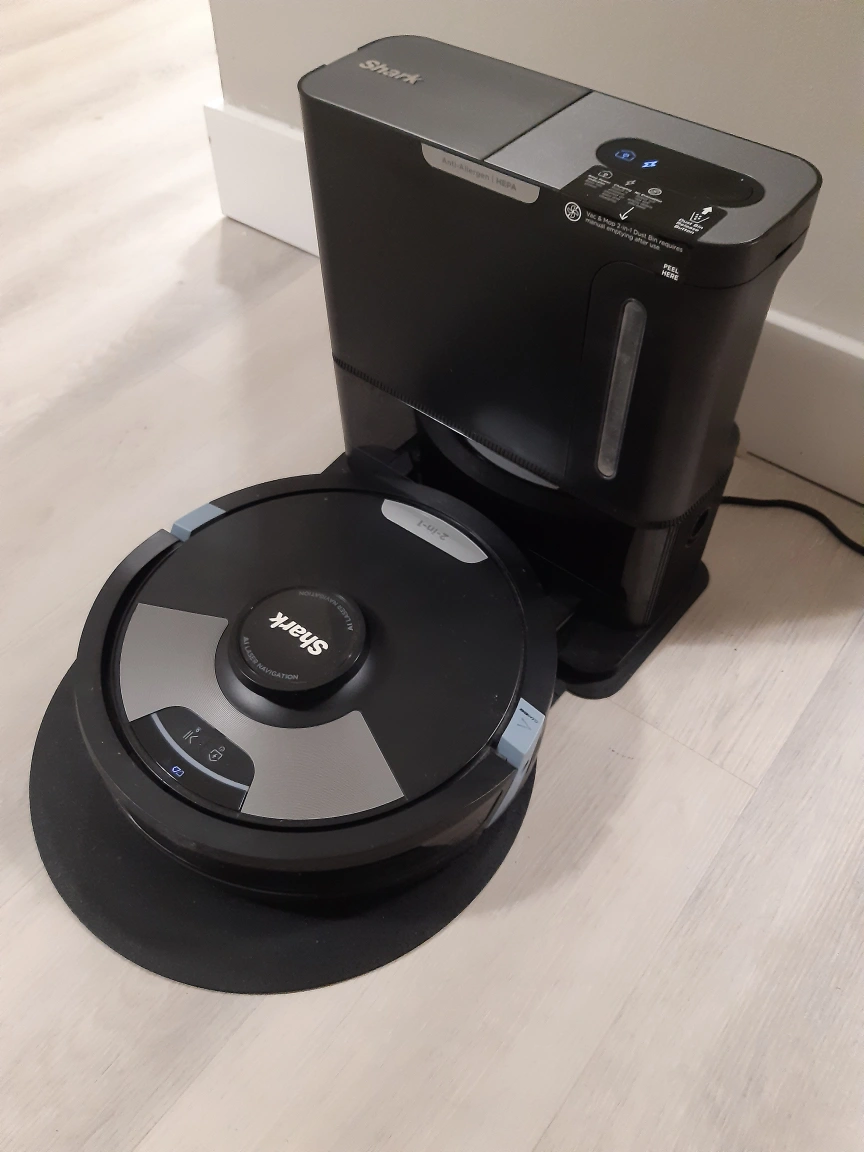 103This is a Shark robot vacuum with a self-emptying dustbin. It is in good condition and comes with all of the original accessories. It was bought in January 2024.