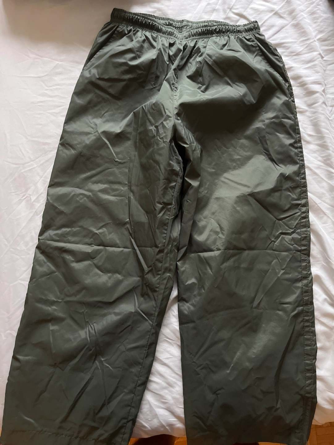 Dark Green colour Nike pants. Synthetic waterproof type material on the outside, net on the inside. Womens Medium size